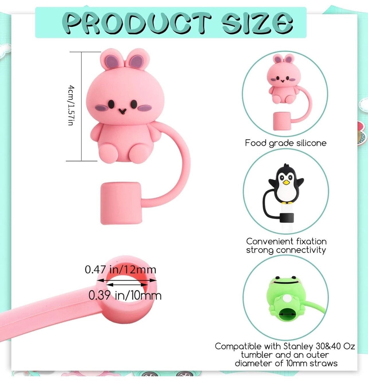*Straw covers are 10mm and will fit a Stanley straw!