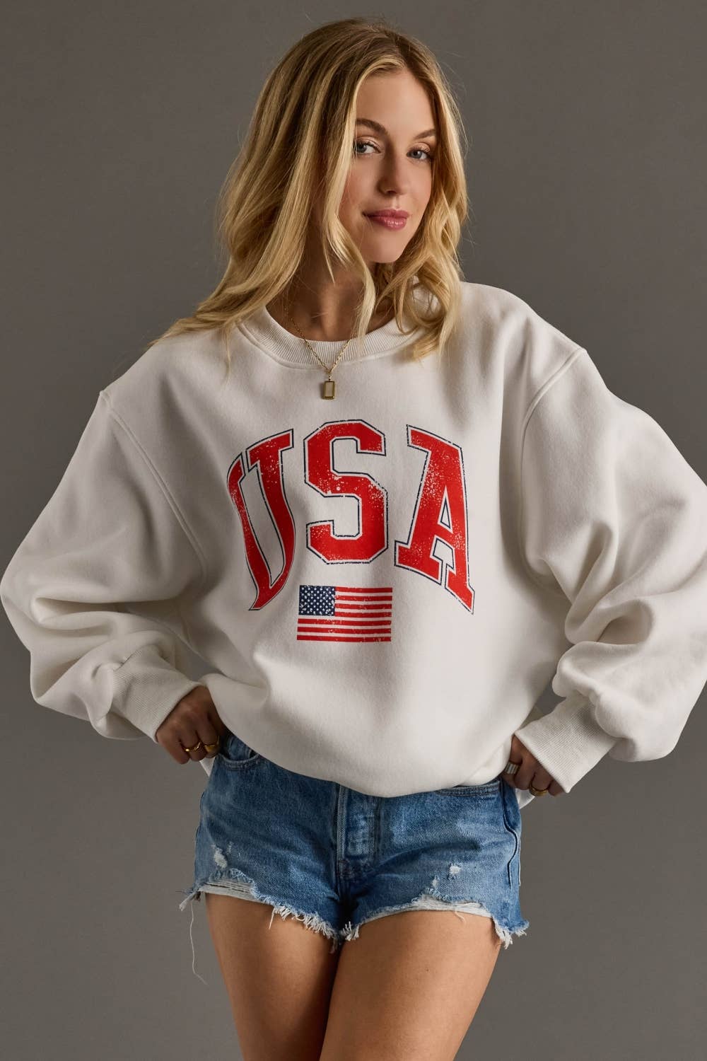 White graphic sweatshirt Red “USA” text with USA flag on the front.